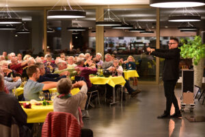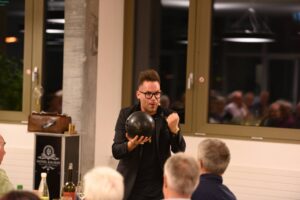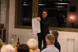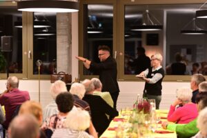 Nach dem feinen Nachtessen trat der Zauberer Daniel Kalman als Überraschungsgast vor das Publikum. Er verblüfft mit seinen witzigen Zaubereien und seinen phänomenalen mentalen Fähigkeiten. Dieser Auftritt war der Höhepunkt des Abends, welcher von den Freiwilligen sehr geschätzt wurde.